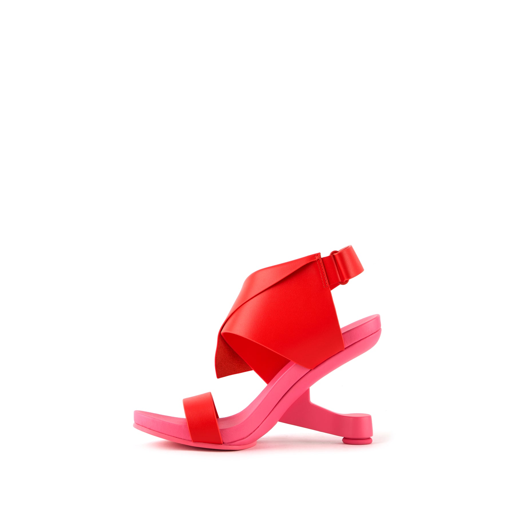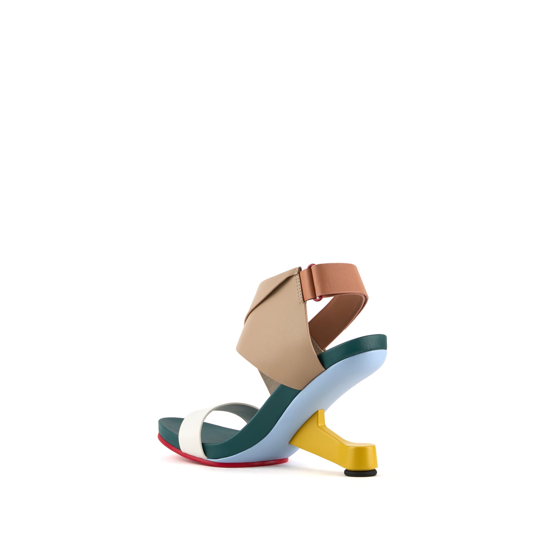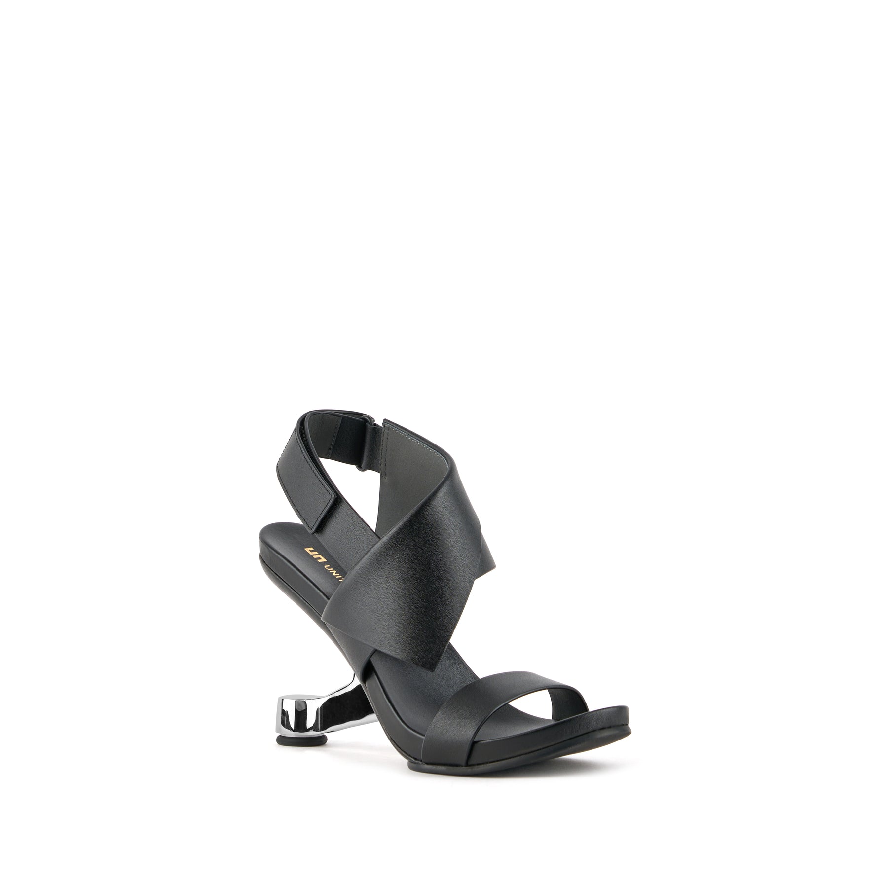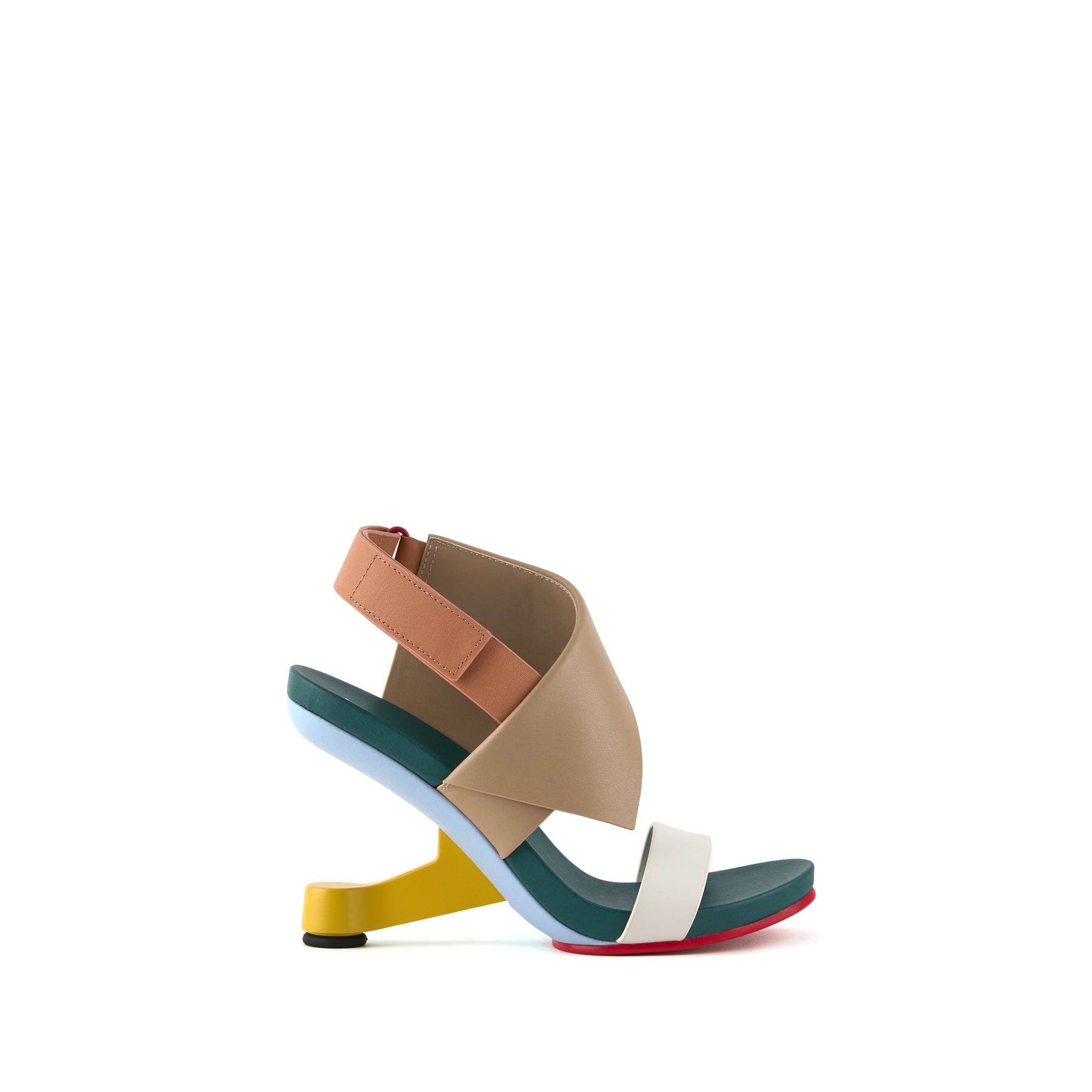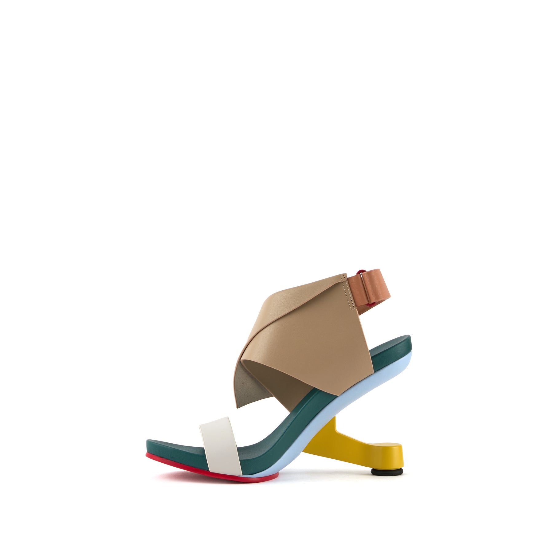 The Eamz Polo is a high-heeled sandal that combines architectural design with contemporary elegance. Featuring an overlapping leather upper and an adjustable ankle strap, it ensures a secure, comfortable fit while making a bold visual statement.