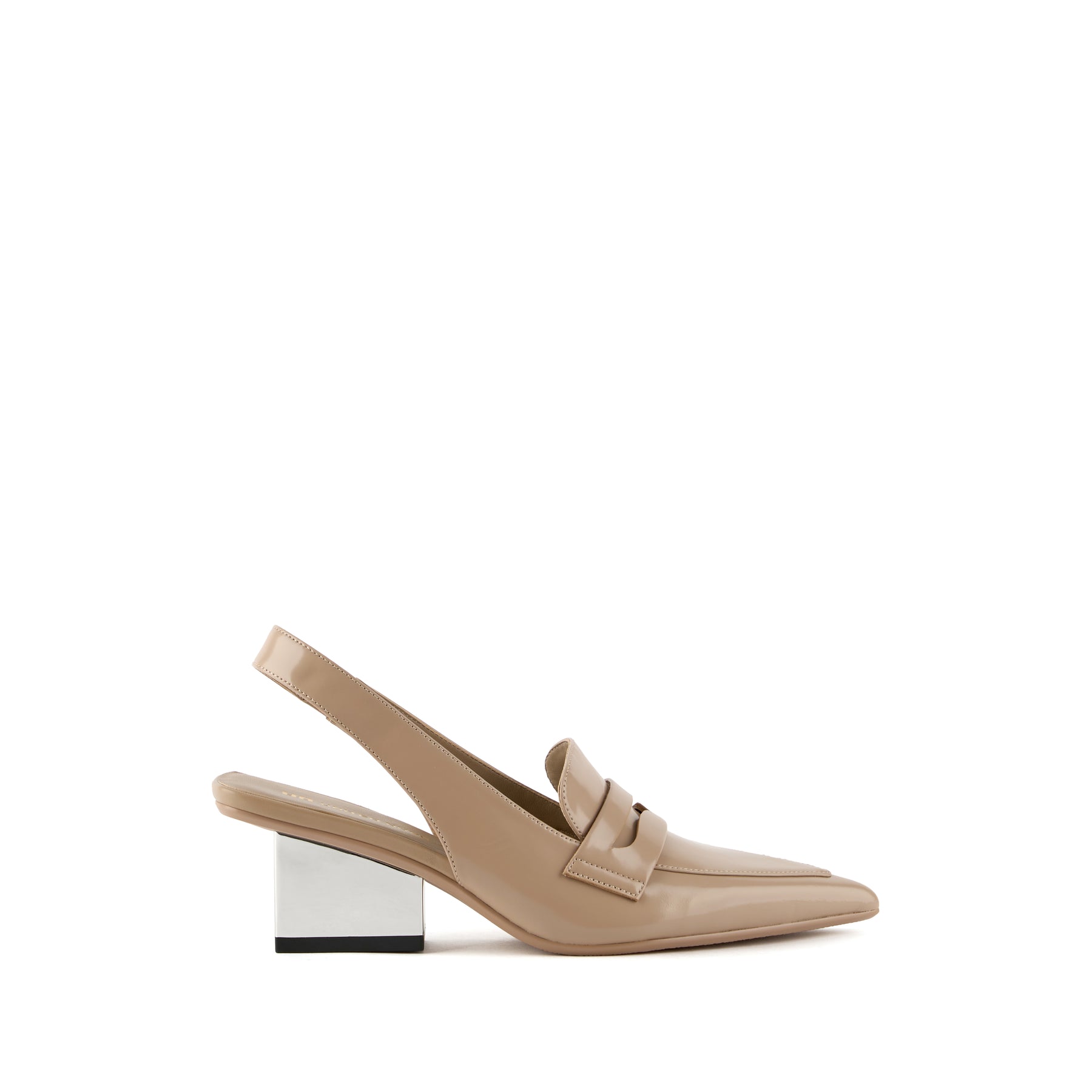 The Raila Loafer Mid is a pointed, closed-toe pump that fuses classic loafer styling with contemporary elegance. A structured loafer upper is complemented by a slingback strap with hidden elastics for a secure, comfortable fit, while the sleek block heel adds subtle height and modern refinement.