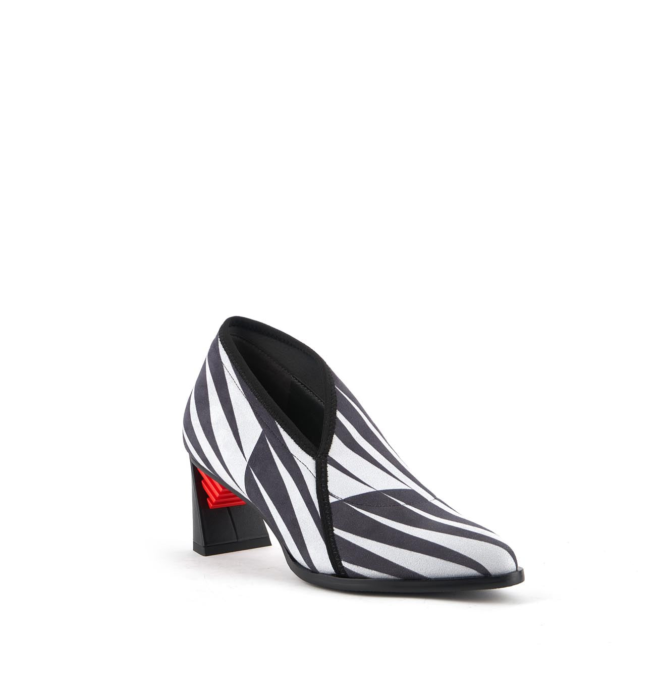 United Nude Sonar Fold Mid – klassisches Bootie-Modell von United Nude, das für seine einzigartige UN-Absatzform bekannt ist. Das Design besticht durch die charakteristische Fold-Form, eine asymmetrische Topline und eine elegante Mandelspitze (Almond Toe). Das Ergebnis ist ein moderner, architektonischer Schuh, der Stil und Komfort vereint. Perfekt für Business, besondere Anlässe oder stilvolle Alltagsoutfits.