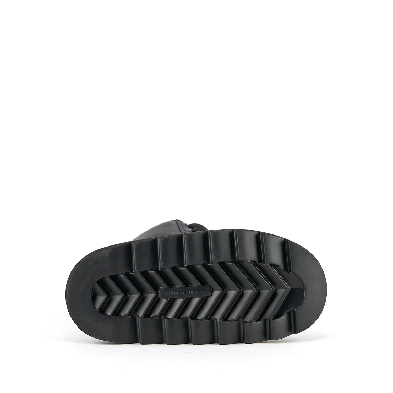 Zembla Hiker Mid ist ein geschnürter Winterboot mit einem Obermaterial aus Nylon und Nappaleder, dicken Strickschnürsenkeln, einer markanten Schutzkante und einer klobigen, profilierten Plateau-Sohle. Ein versteckter Keilabsatz von 100 mm (3,9 Zoll) sorgt für eine dezente Erhöhung. Klare Linien verbinden sich mit den technischen Eigenschaften eines Wanderschuhs – so entsteht ein verspielter, vielseitiger Stil, der sich sowohl in der Stadt als auch bei leichten Outdoor-Abenteuern zuhause fühlt.