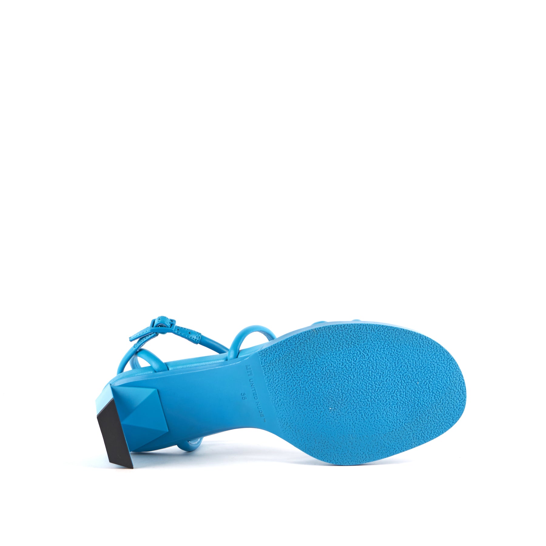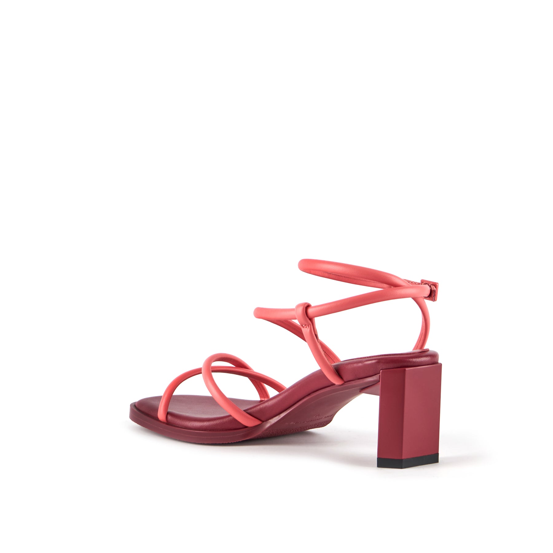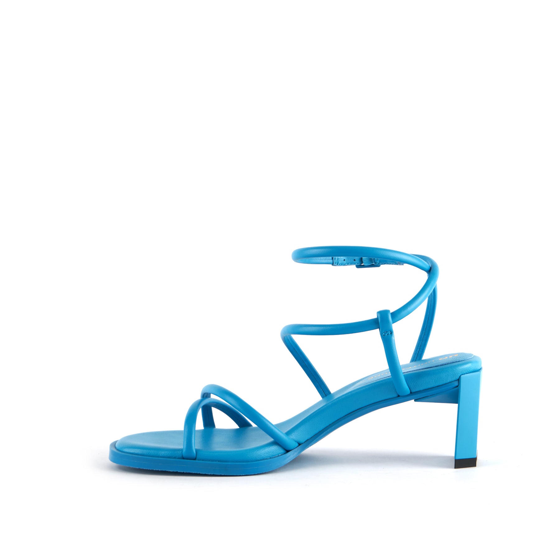 The Tara Lee Mid is a dynamic mid-height summer sandal defined by delicate straps and a slim, geometric heel. Leather-wrapped tubular straps fasten at the ankle with a metal buckle, creating a secure yet elegant fit. A softly padded leather insole enhances comfort, while the square toe shape completes the design with a contemporary finish.